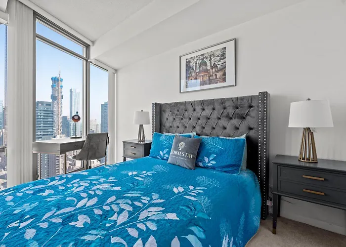 Magnificent 1 Bd High Floor View Downtown Toronto Apartment comes with an oven and a dishwasher available in a fully-equipped kitchen. Toronto Union train station lies a 25-minute walk away.